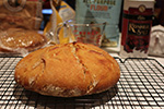 learning from yesterday's mistake, i made sure to use a lot of flour to keep the dough from sticking, both on the board surface and on the dough itself. i managed to get a really good fold, transforming the dough to a tight ball. instead of putting the dough on cheesecloth - which the dough has a tendency to stick to - i put it on a piece of parchment paper before letting it rest in a medium pyrex bowl.