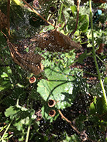i collected a container of cherry tomatoes, some thai chili peppers, and a few cucamelons. also a pair of eggplants. i was hoping to get at least one zucchini, but when i checked my squash plant, i saw one of the fruits had atrophied. and now with the temperature getting colder at nights and the autumn sunlight lower on the horizon, i'm afraid conditions aren't great for getting any zucchinis this year. this was a bonus plant anyway, a wild squash that emerged on its own, the last hurrah of plot 34.
