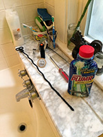 it was a balmy rain event, with temperature in the 80's and high humidity. it was uncomfortable enough that my mother turned on the air conditioner. when it gets humid like this the house begins to stink of dog, which got me to doing some vacuuming to clean up all the dog dander. it smelled worse at first (the vacuum kicking up more dog smell from the carpets) but once i was finished, the house didn't smell as bad anymore.