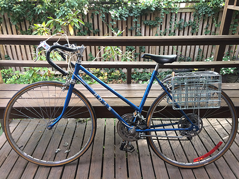 back in my early days of renewed biking interest, i'd acquired the ross eurosport (august 2011). that was the very first bike i ever bought on craig's list, i think i only spent $20 on it. i thought it was a great bike and rode it as much as i could, before i got my hands on other bikes and the ross sort of got abandoned in the basement for several reasons: i was never completely comfortable with the dropdown handlebars (made navigation a bit trickier compared to traditional wide-set handlebars) and the steel frame made it a heavy bike. but before relegating the ross to the bicycle dustheap, i'd done some customization: toeclips on the pedals and a pair of collapsible rear baskets (one of them lost when it fell off the bike because i was only used plastic zip ties at the time).