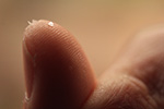 after i finished eating my lunch, it was time to peel off the dried glue. i examined the glue patch to see if there was any glass shard attached but there was none. at first i thought maybe the glue trick worked, but when i pressed down on the puncture spot, it still hurt, so i knew something was still inside. i started to get worried. maybe i needed to go see a doctor about this. but before i do, i should try digging around the wound area with a knife to see if i can pry out the glass. i had a leatherman micro but the knife on that wasn't sharp enough. so i used the sharpest knife i had: an x-acto knife (disinfected with some alcohol).