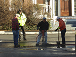 the weather this morning was nice for a change, with sunny temperature almost in the 60's. it felt more like october than december. because of the all the rain we've had for the past 2 days, the streets were wet in some spots. there was a large water puddle where my street touches beacon street. i could see how it'd be a problem come winter, with it'd freeze over. so i was pleasantly surprised when i saw road crew jackhammering the area and leveling out the embankment to get rid of the puddling.