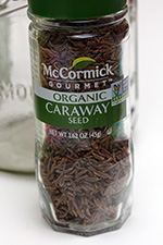 to the shredded cabbage i added 1 tbsp of sea salt and 1 tbsp of caraway seeds. i never tried caraway seeds before. they're like a mix between cumin seeds and fennel seeds, with a minty anise flavor. i mixed everything by hand and let it sit. the recipe said to wait only 10 minutes but i ended up waiting an hour because i was making the chicken corn chowder.