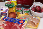 2 lb. chicken breast package of bacon 1 sweet onion, chopped 5 red potatoes, chopped 5 garlic cloves, chopped 2 cups frozen corn |