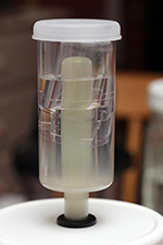 around 9pm i noticed something unusual was going on in the mason jar airlock. cabbage juice seemed to have push out from the jar into the airlock itself, in the form of a milky yellow liquid. 30 minutes later i saw the water level inside was even higher than before. soon it'd overflow.