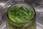 an hour later the cabbage had reduced in size by about a half. i mixed everything again, squeezing and massaging the cabbage to make it more compact, before i started packing the cabbage into the 1-quart mason jar. it didn't seem like everything would fit, and i kept compacting the cabbage in the jar to make more room, until finally i managed to get all of it inside. i saved a piece of cabbage leaf earlier to use as a cover to prevent the shredded sauerkraut from floating up. i then screwed on the lid and added purified water (i.e. boiled then let cool overnight) to the airlock. let the fermenting begin!