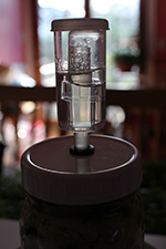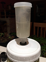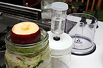 originally i was going to add 1 cup of baijiu, but that seemed excessive and might end up drowning the other ingredients. i think pepper plus garlic plus salt is enough for a good hot sauce, nothing else needs to be added. but i figured the baijiu would add another layer of flavor, and might help (or hurt) the fermentation. i went with 1/4 cup of baijiu, which even that seems like too much. if this recipe goes well, i might reduce the alcohol even more for future batches. i scooped everything inside a pint jar.