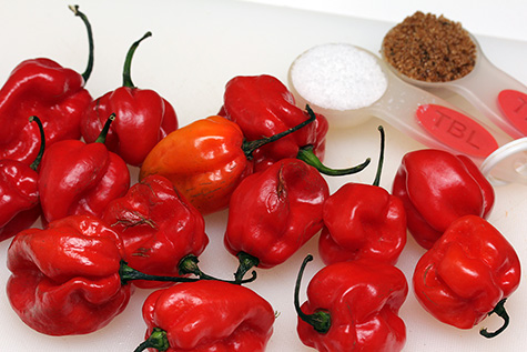when i chopped up the scott bonnets the smell was insane, at times fragrant yet scary but i could sense how hot it was. even after washing the utensils and containers, they were still incredibly spicy when i test licked them. i knew i had small microscopic cuts on my hands but suddenly they hurt like somebody poured acid into them. at one time i even choked from the fumes, coughing and tearing up.