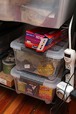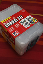 i put my new storage bins to good use, 4 in the closet, 2 in the kitchen. i switched to plastic bins every since i had a mice problem many years ago. since then, my house has been mouse free. i'll need to take some time to reorganize my closet and find things to fill these new bins with.