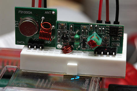 next i installed some software. first was wiringPi; not really sure what it does, but many 433 MHz tools require it, so i installed it. then i installed the 433Utils. i couldn't get the code to compile until i redownloaded all the files again using git clone --recursive git://github.com/ninjablocks/433Utils.git to recursively download the rc-switch submodule as well. that compiled successfully, and i was able to run sudo ./RFSniffer to receive the 6-digit on/off codes from my light switch remote. the 433MHz receiver has a very short range - just a few inches - i basically had to point the remote next to the module. next i tried running codesend but it didn't do anything. either the code didn't work, or maybe the transmitting module was broken.