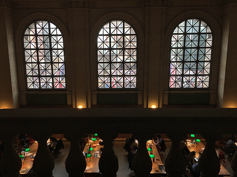 i wanted to show karen inside the boston public library but there were so many protesters on the dartmouth street steps of the library (copley square facing) that we went in from the side entrance on boylston street instead.