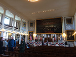 we arrived at faneuil hall around 11:30am, which gave us a chance to use the bathroom. i've always wanted to see the actual meeting house. i did see it one time for myself, back when my father became a naturalized citizen and he had his ceremony here. but i couldn't remember how i got inside, and every time i've been back i could never find a visible entrance, so i just assumed it's only opened for special occasions. but emboldened on this occasion, i decided to ride the small elevator to the 2nd floor. and viola! the actual faneuil hall meeting place. as a joke, i kept referring to it as the "cradle of liberty" after karen saw a sign downstairs and asked me the definition of cradle. "a cage for a baby," i answered.