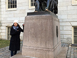 back down into boston common we went by frog pond to see the people ice skating. karen told me she knows how to skate (which i found surprising, since i don't think ice when i think of mexico), but still an amateur at best. at the granary burial ground i showed her some famous graves (paul revere, samuel adams, john hancock). then it was old city hall (now a steakhouse with a benjamin franklin statue outside) followed by the old state house.