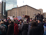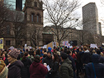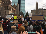 after we finished eating, we cut across boston common then the public garden to commonwealth avenue. we then headed to copley square. by then it was already close to 2pm, but the 1pm muslim ban protest only seemed to be getting started as streams of people (some carrying signs) crowded streets and sidewalks all going the direction of copley square. karen said it was inspirational to see so many people protesting the actions of presidential trump. she took photos and stopped to send them to her parents.