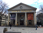 next we went to the tourist trap known as quincy market. karen said she'd been here before the last time she was in boston, as it was close to the seaport district where she was staying. earlier karen asked me if boston had any specialty food. i told her maybe lobsters and clam chowders. "oh, and of course dunkin' donuts," i added. she didn't know that dunkin' donuts started in the boston area (quincy). they even have dunkin' donuts in mexico now, so it's pretty ubiquitous, but here was where it first started.