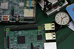 the new pi3 (henceforth known as pi3v2) looks nearly identical to my first pi3 (pi3v1), saving for a piece of high temperature tape on the HDMI port (pi3v1) and some markings on the ethernet and USB ports (pi3v2). i placed the new pi3 in a spare case i happened to have. i also had a set of spare miniature heatsinks, but i wanted to wait and make sure i can power up this pi3 before attaching them. unfortunately i don't have a spare microSDHC memory card, so i can't use the pi3v2 until i order one.