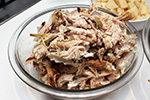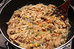 1 lb. rotisserie chicken, shredded 2 tbsp butter 1 yellow onion, caramelized 1 cup frozen mixed vegetables 1 russet potato, skinned, cubed |