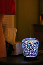 the sztrokia might be a disappointing diffuser, but it sure looks pretty. the glass shell looks like there might be multiple layers of mirrored display in order to create that infinity dots effect. i did some research online, and finally discovered this effect is called an infinity mirror. basically two layers of mirror, the one on the inside 100% reflective, the one on the outside only 50% (like a one-way mirror), which creates that cool infinity effect. that combined with the color-changing led's create this very psychedelic transcendental calming optical illusion.