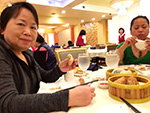 we arrived around 10am, found a free one-hour parking spot right in front of the restaurant. just an hour earlier than last time and the crowd was significantly less (maybe only 40% to capacity), although schools' winter vacation schedule probably also took a toll. we didn't mind, they gave us a large round table centrally located in the restaurant, prime spot for passing carts.