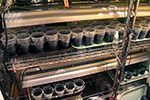 i planted some of the flower seeds earlier, because they were going to live in the starter trays. in the smaller trays (dozen cells each) i planted 2 types of snapdragons. they need light to germinate and prefer a cool environment so the best place for them was by the back door. of my longer starter tray (two trays of 18-cells each), i planted half columbine 'mckana giants' and half balloon flower 'komachi'. both flowers are winter hardy, and prefer a period of cold stratification in order to germinate, so i set them outside in a sunny spot. i got my balloon flower seeds from park, and they only gave me 25, so i was very careful about only adding a single seed per cell.