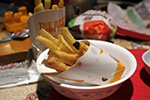 when i came into the house i could smell the strong odor of greasy cooking. in fact, it smelled like fried fish, and i asked karen if she was eating fish, but she said no. talking with her in the kitchen, i tried very hard not to stare at the frying pan splattered in oil and god knows where else. she only cooks something oily maybe twice a month, so it's not too bad (although ideally she wouldn't fry anything at all).