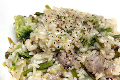 i made risotto again tonight. this time besides italian sausages and frozen broccoli, i also added some roasted asparagus (half a pound). mixed in the risotto, the asparagus had an earthy mushroom flavor, and on several occasions i could've sworn i added mushrooms by mistake.