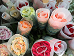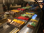 we arrived without incident. i first took her to boston public market, figured as a nutritionist she'd be interested in seeing some higher end local food. next we went to haymarket, which was the exact opposite in the form of a cheap outdoor produce market. karen seemed to like it, was surprised by how big it was, and said she'd definitely take her visiting friends her. she bought a few vegetables and fruits, including tomatoes, bananas, onions, and some pears. as for me, i got a large box of strawberries ($2), a large box of blueberries ($2), a bag of honeycrisp apples for $1.50, 2 ripe avocados ($1), $2 worth of long hot peppers, and a bundle of thin asparagus ($1, inspiring karen to get some as well).