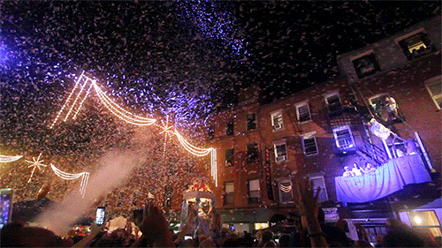 at about 9:13pm they finally released the confetti. 12 years ago it was just shredded paper tossed from the roofs of the nearby buildings; however this time around they had confetti cannons to send confetti everywhere. i kind of miss the good old days of shredded paper because at least afterwards it looked like it snowed. with that, in under 15 minutes, the flying angel ceremony was over, as the crowd of people began to shuffle away.
