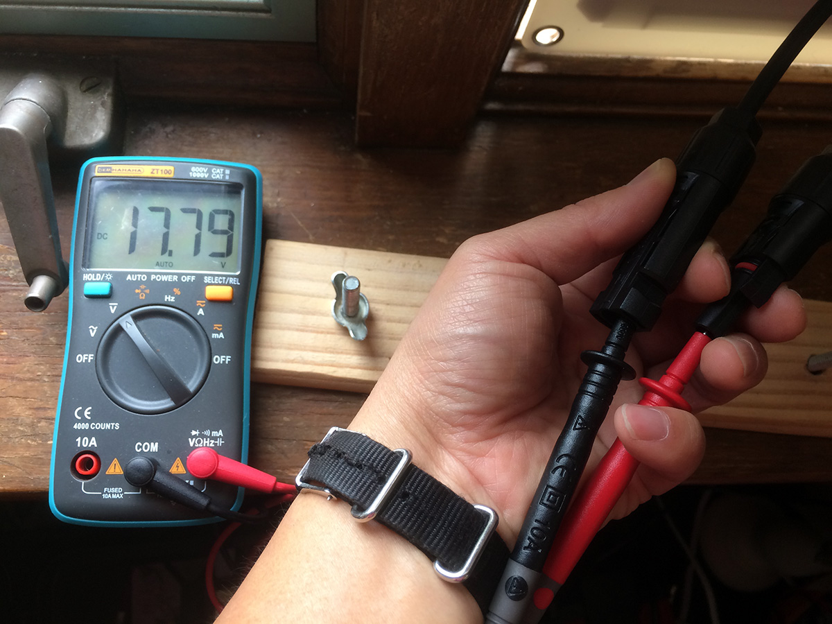 when i measured the 50W solar panel with the multimeter beforehand, it read close to 18V. however, when i connected it to the CMG-2420, the controller read 12V. that's when i realized the controller voltage shown is actually for the battery, not the solar panel. to see that, i needed a wattmeter to be connected between the panel and the controller (unfortunately my father took the spare wattmeter to the cafe to work on the wiring).