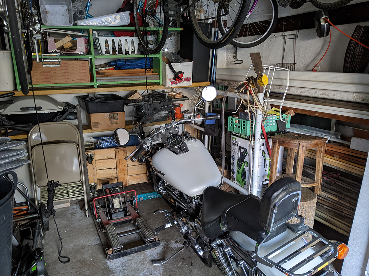 before i could put the motorcycle away in the garage, i had to clean it first. i also had to put our bamboo stakes into the garage, as well as all the planting containers that'd been sitting out in the backyard. it took me about 2 hours to clean it out, before i rode in the motorcycle. i also put the snowplowers near the entrance in case my father needed to use them tomorrow.