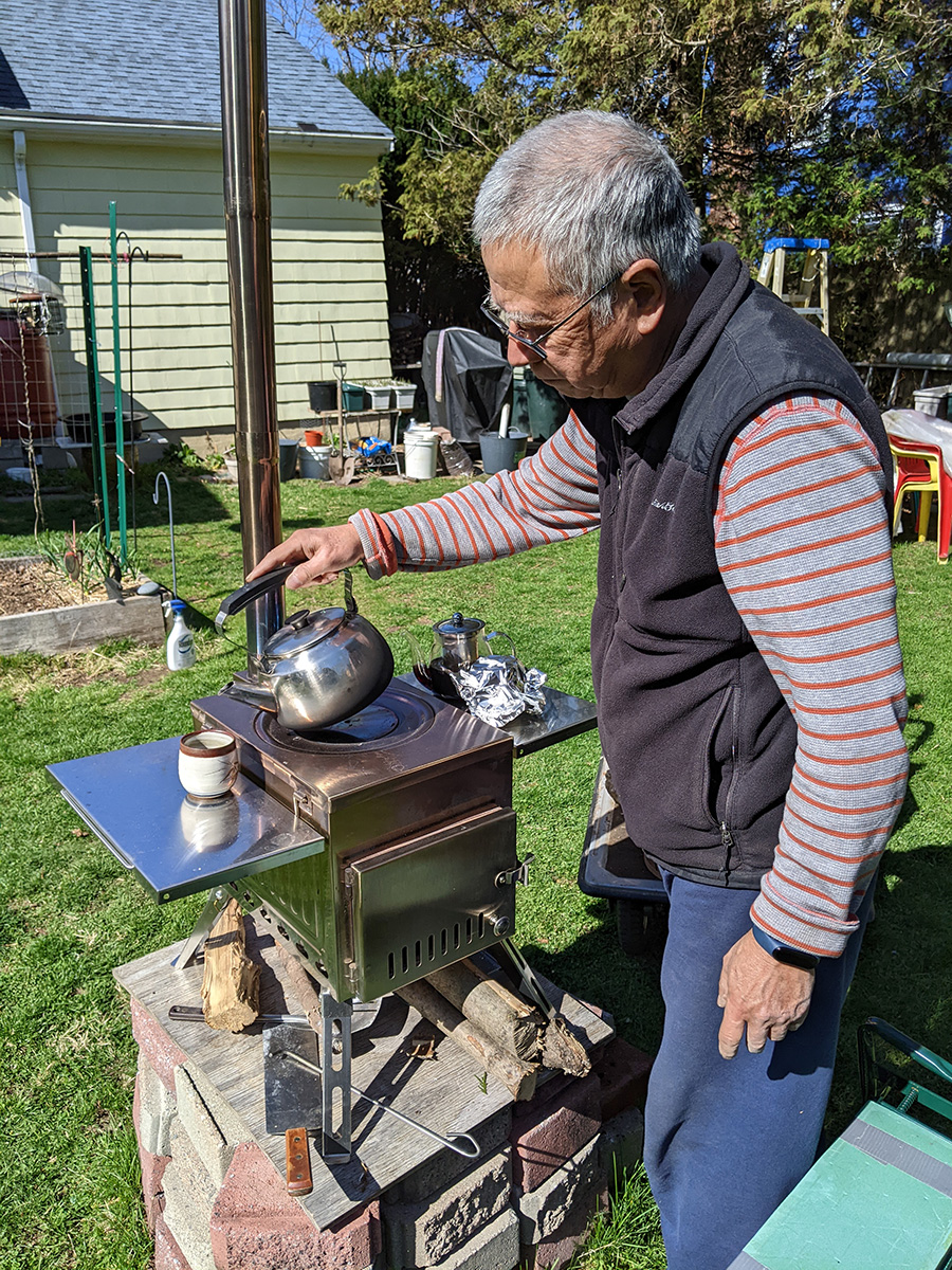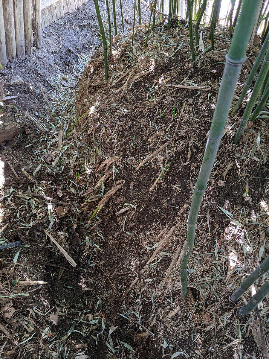 the moment i arrived in belmont around 11:45am, i was in the backyard doing yard work. my father had moved the cars out of the driveway so we could get access to the lawnmower. he also wheeled the tent stove into the backyard and was burning some wood. but the thing i noticed the most when i set foot outside was the stench of chicken manure. my father had opened a new bag, and had sprinkled some manure around the backyard. the smell was so foul, i was afraid neighbors would complain. i ended up putting some leaf compost on top of the raw chicken manure to cover up the smell, but i could still smell outside, as i kept discovering new places where my father applied the manure.
