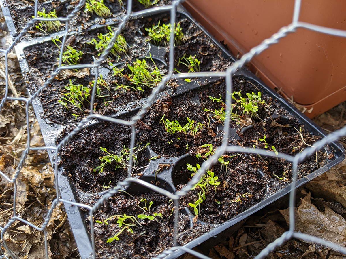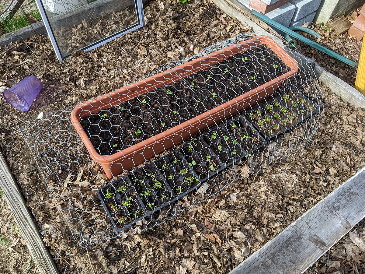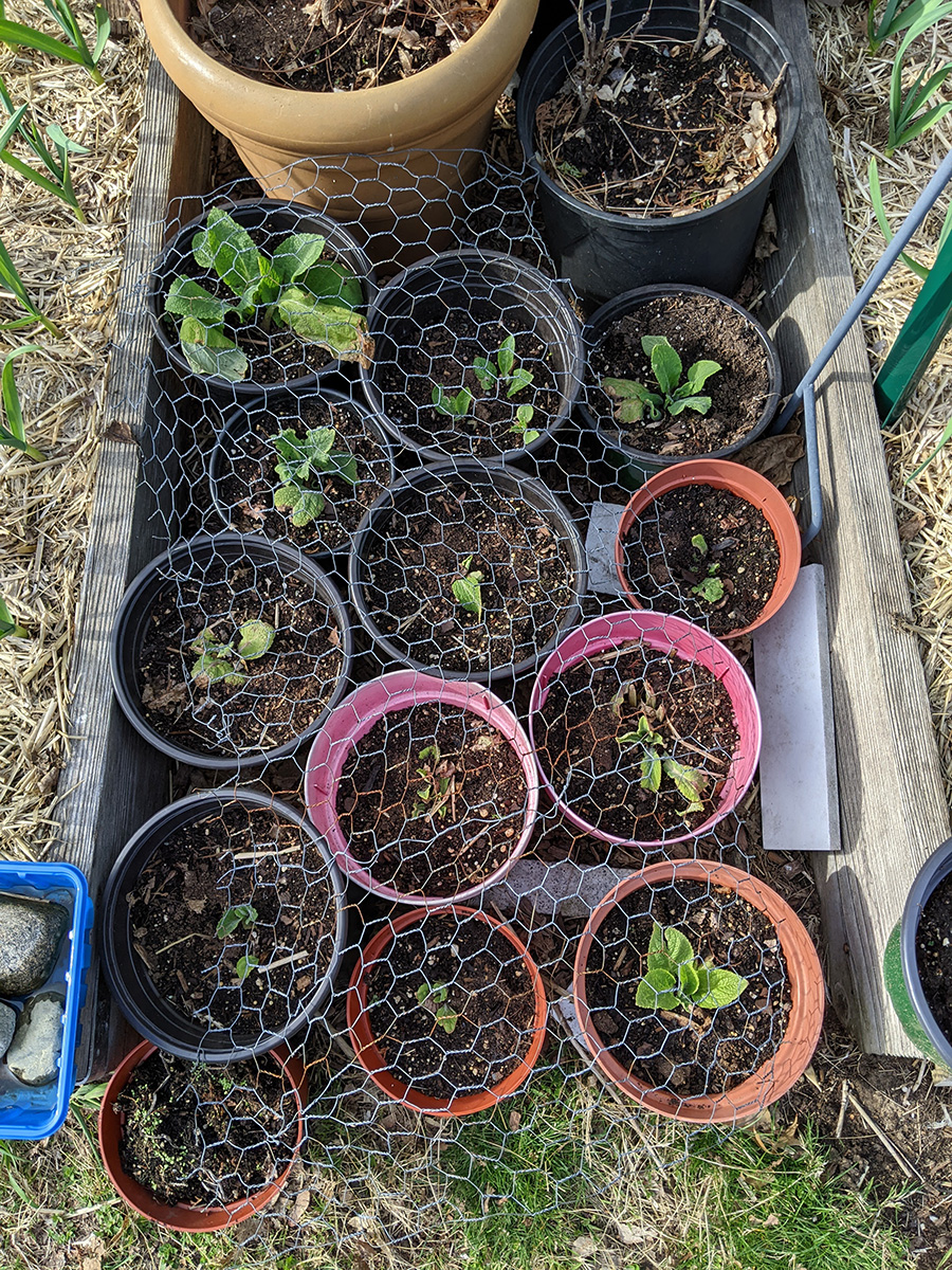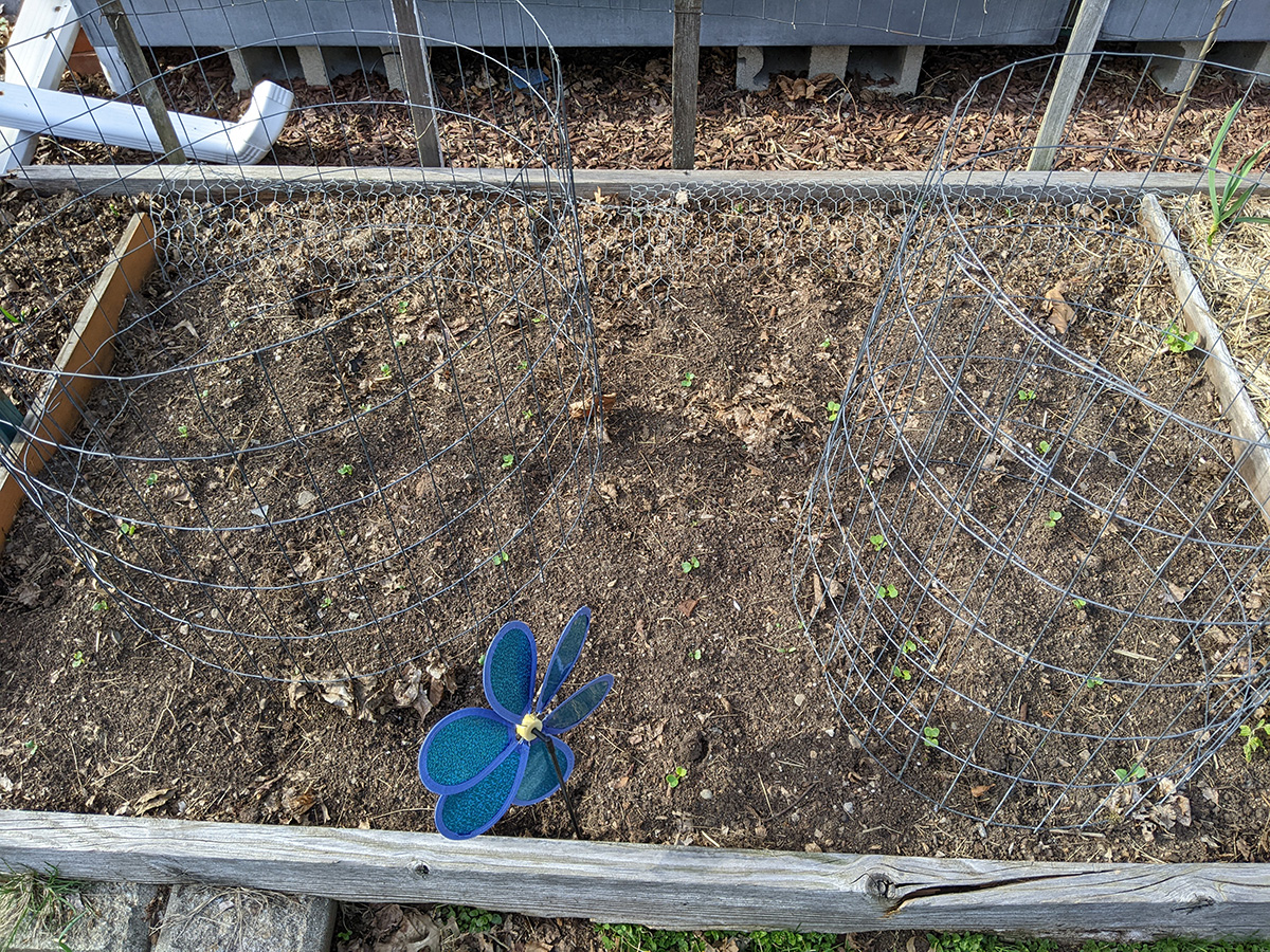 one final inspection of the backyard around 5pm, i discovered our hops plant was starting to form some bines. we put a mesh fence around it to protect them from rabbits (though later i read rabbits don't eat hops).
