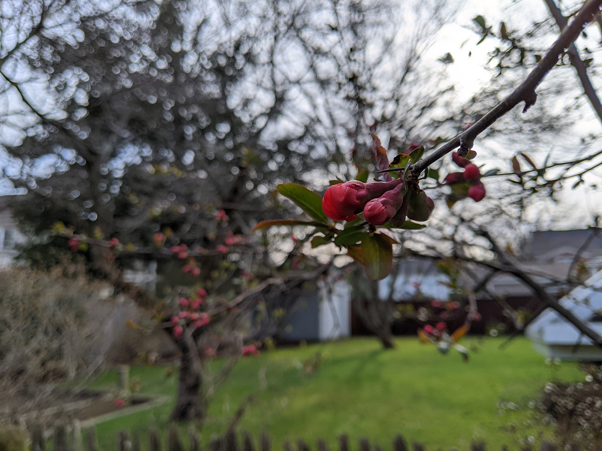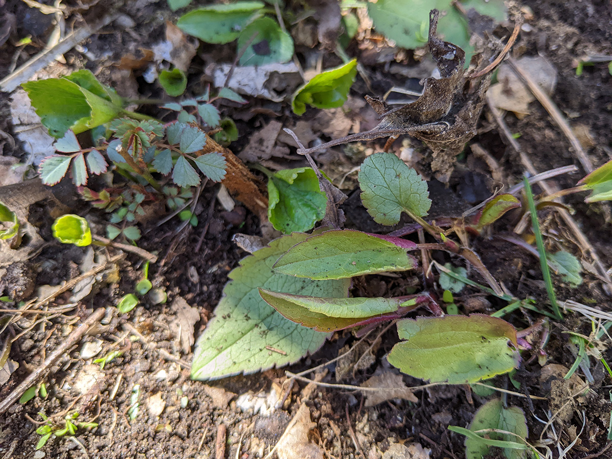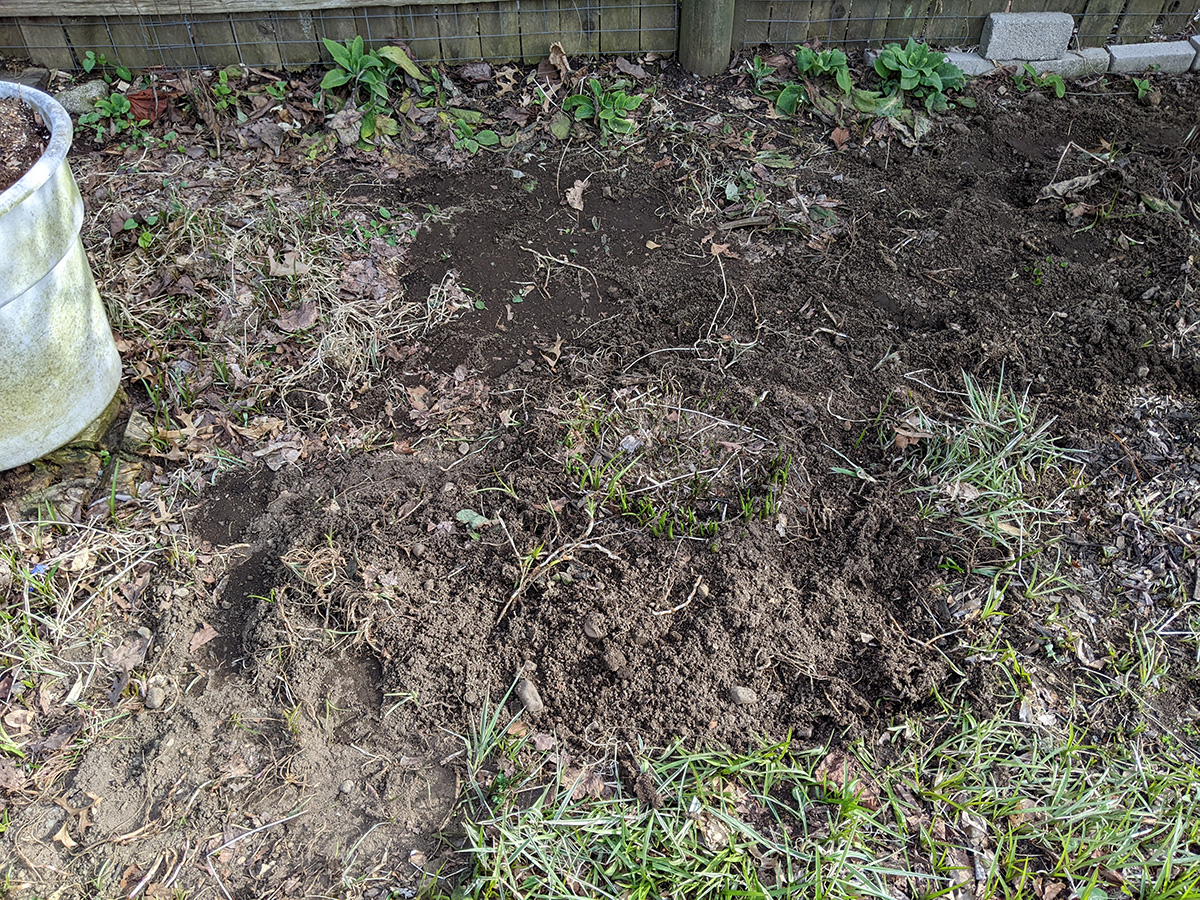 we cut up the stack of remaining maple branches sitting on top of the picnic table and put them into 5 garden refuse bins. i did some raking, cleaning up the leaf debris around the southwestern corner of the yard. whenever i saw an dandelion or some creeping bellflowers, i'd dig them up. i redug the bamboo moat, and discovered half a dozen escaping rhizomes that i either tried to dig up or i simply sprayed with roundup in the hopes of killing them. we moved out all the rain barrels, but we need to recaulk them before they can be used, as a few barrels were leaking last season. my father also helped me move one of the southern bed hostas. my father mowed the lawn, but there was hardly any grass tall enough to cut yet so we didn't have any clippings for the compost, which is all shredded leaves at this point (at one point my father had to go and get more gasoline, this is probably our last season with this mower, we're thinking about upgrading to an electric one).