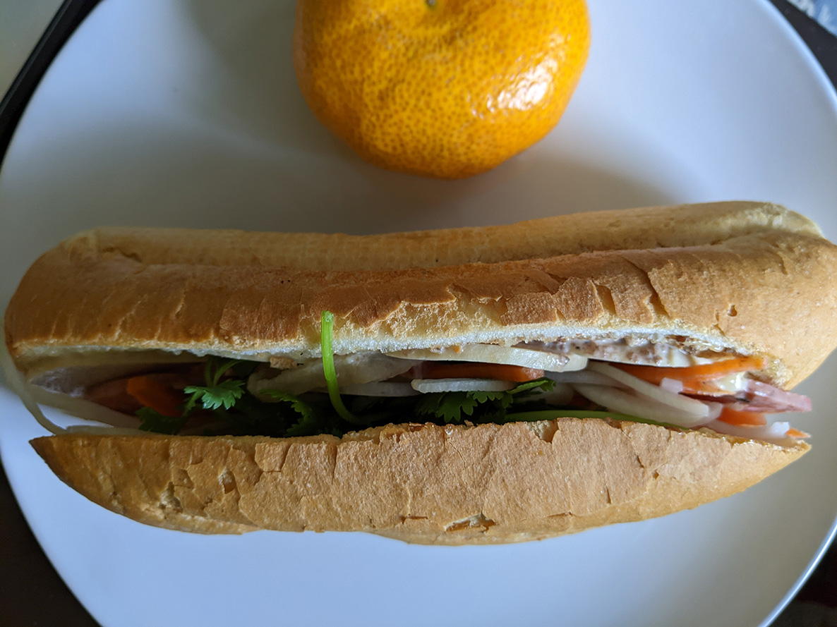i didn't return home until 5pm, where i finally ate something, one of the vietnamese sandwiches. that ended up being my breakfast-lunch-dinner, and i didn't eat anything else afterwards (though i did snack on a bunch of stuff, including watermelon seeds, almonds, peanuts, and potato chips).