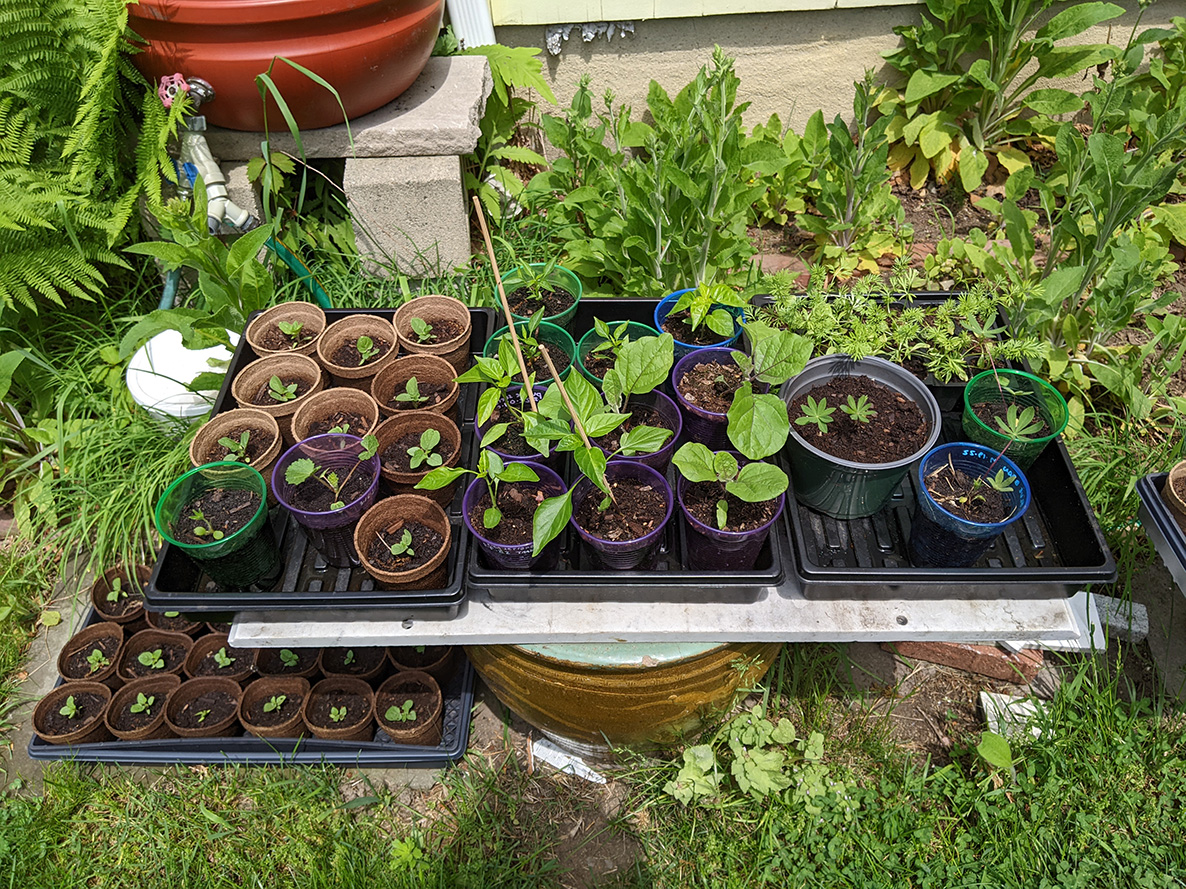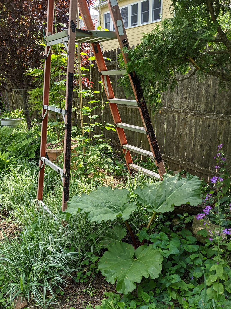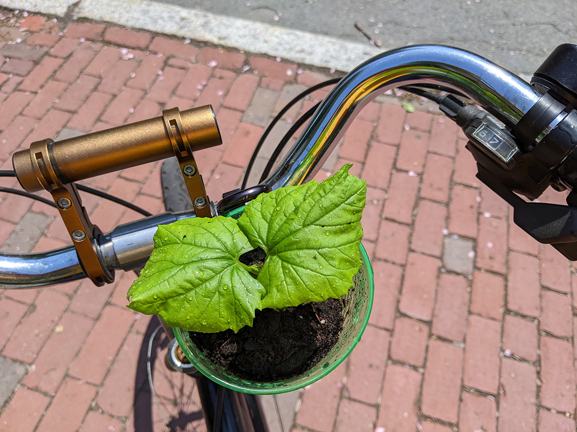 continuing home, i stopped by the community garden to water my plants around 12:40pm. ann - who earlier this week asked if she could have a bitter melon seedling - texted me this morning saying she didn't want it anymore and was returning it. she happened to be in the garden when i went there. she also had some questions about my bike, like my handlebar extender and my bike seat.