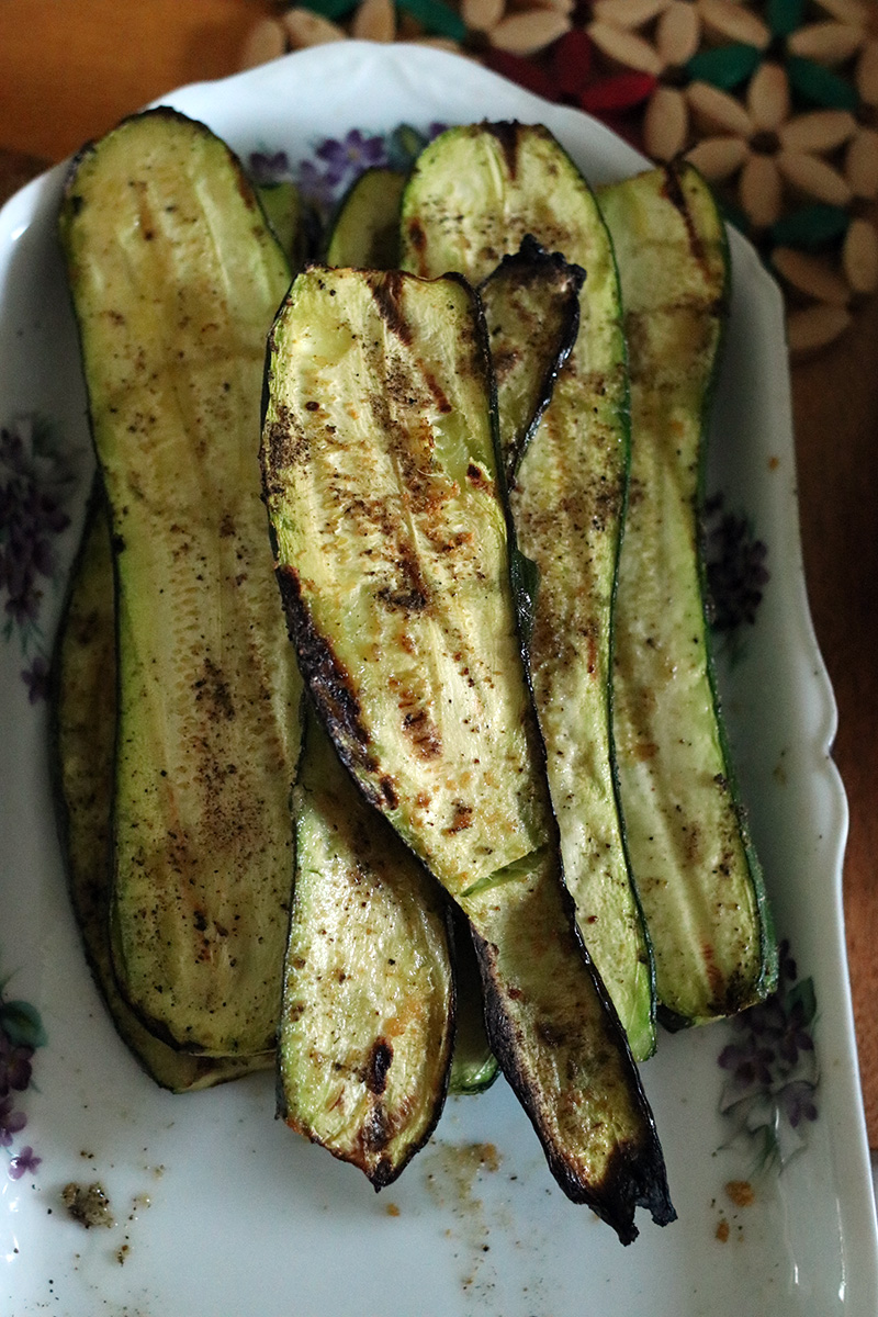 my father grilled the deboned drumsticks as well as some corn and zucchini (no, it was from the garden, we've yet to get a single zucchini this year, although there's currently two very small zucchinis).