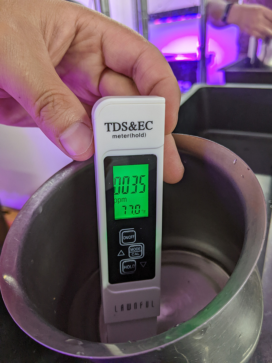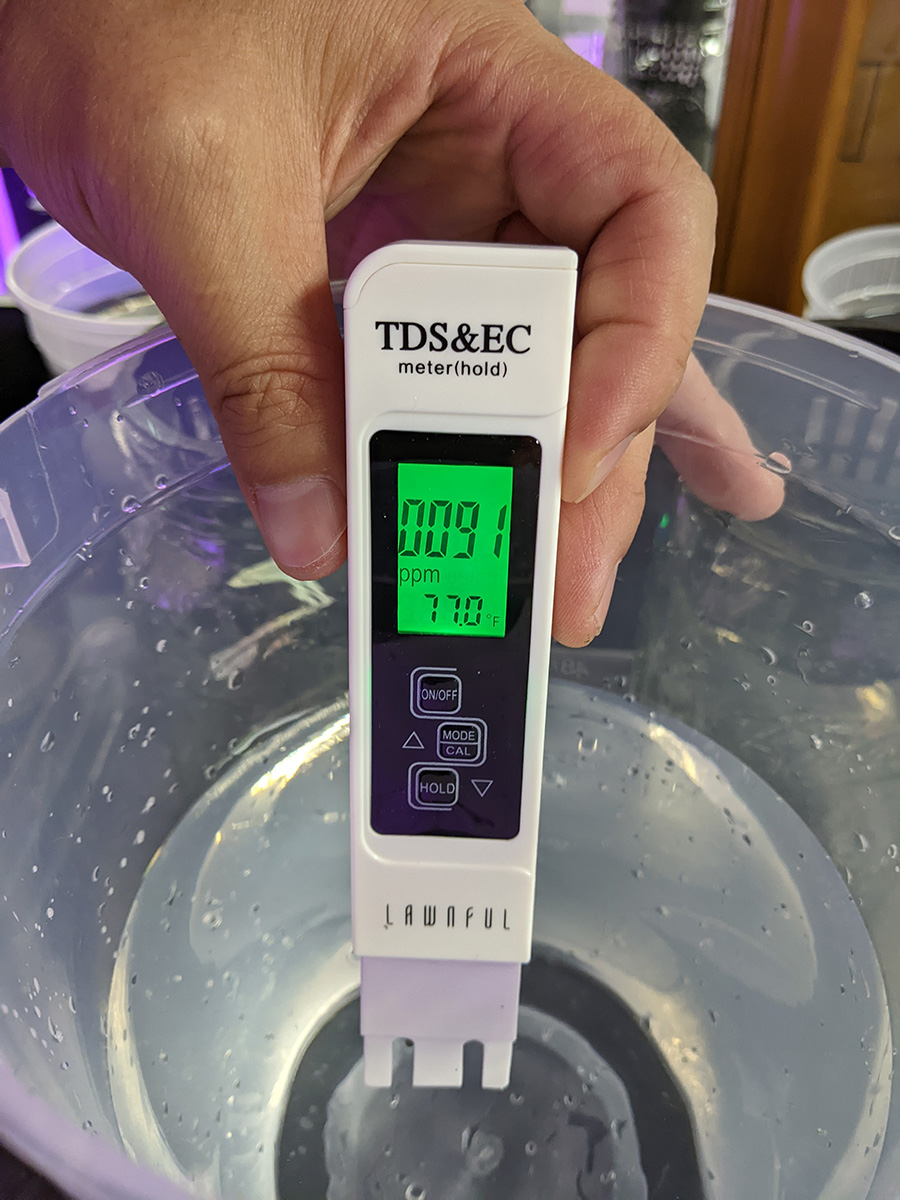 - so on the flip side, even though rain water is more acidic than tap water, it's actually cleaner, and doesn't have as many impurities as tap water: tap water EC 91ppm, rain water 16ppm.