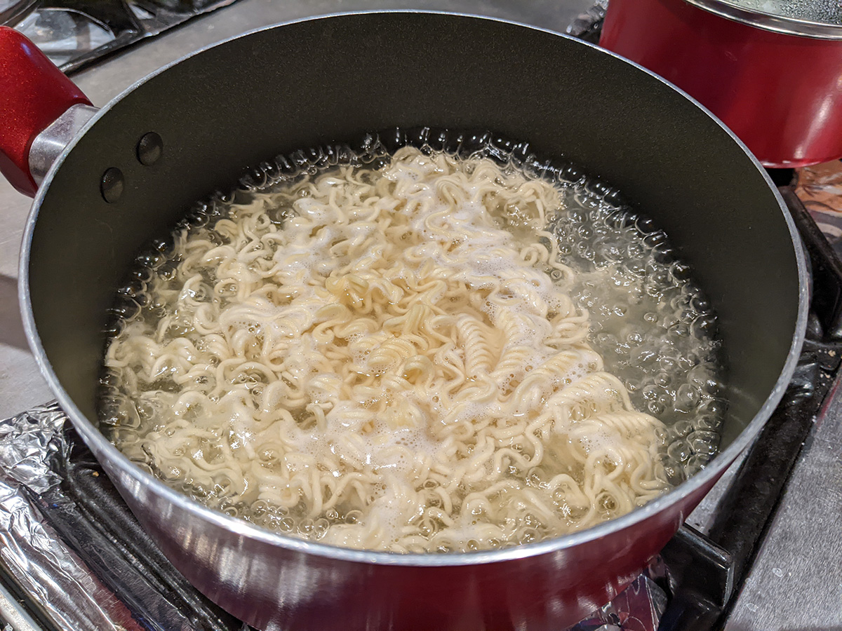 in the early afternoon i made some indomie mi goreng for lunch with a poached egg.