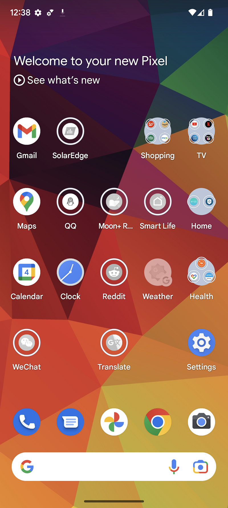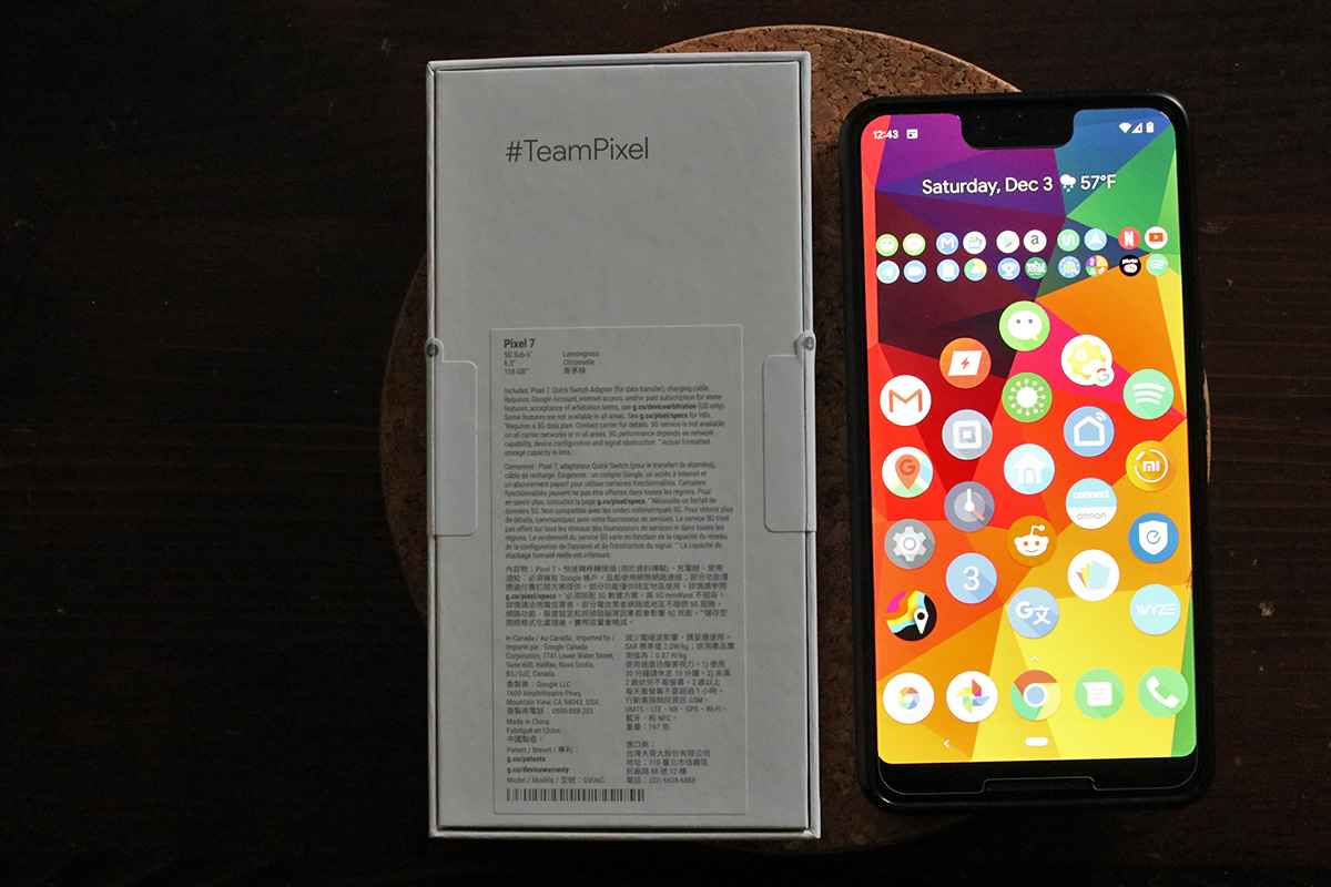 initially the homescreen on the pixel 7 looked kind of awful, but that was because it was still downloading all the missing apps from the google store. once it downloaded the nova launcher, it asked me if i wanted to use it as my launcher (yes) and then everything looked like the way i had my homescreen laid out on the pixel 3XL. it was almost disappointing, because it looks very much like my old phone, so it felt like i was still using the old phone. after it finished installing all the missing apps, i had to sideload a few additional apps that i installed manually, like myradar and a patched version of spotify.