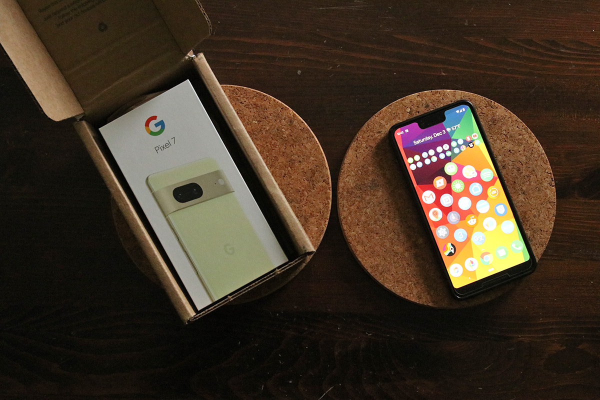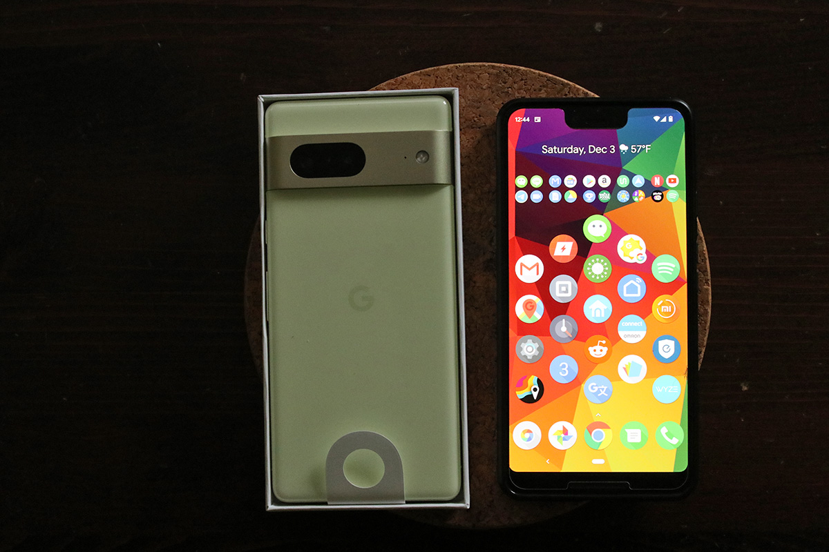 i checked out the google pixel 7 for the very first time, even though it arrived 2 days ago. judging by how long it took me to finally open the box, you'd think i wasn't excited about getting a new phone. but that's not true. i wasn't so much the phone as i wasn't looking forward to the hassle of migrating all my data from my old pixel 3XL. but i figured i could at the very least play around with the new phone for a bit, before factory reseting it for the actual transfer. the first thing i noticed was the color of the phone, which had this pale green color that made me think it might glow in the dark. i didn't think i'd like it, but the screen is black, so i never see the back of the phone anyway.