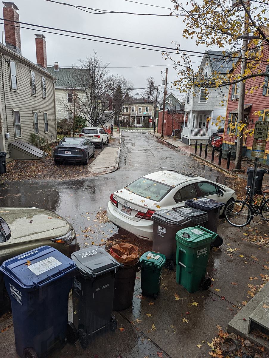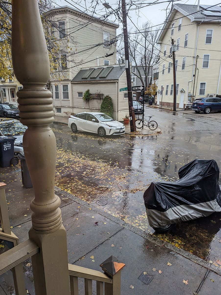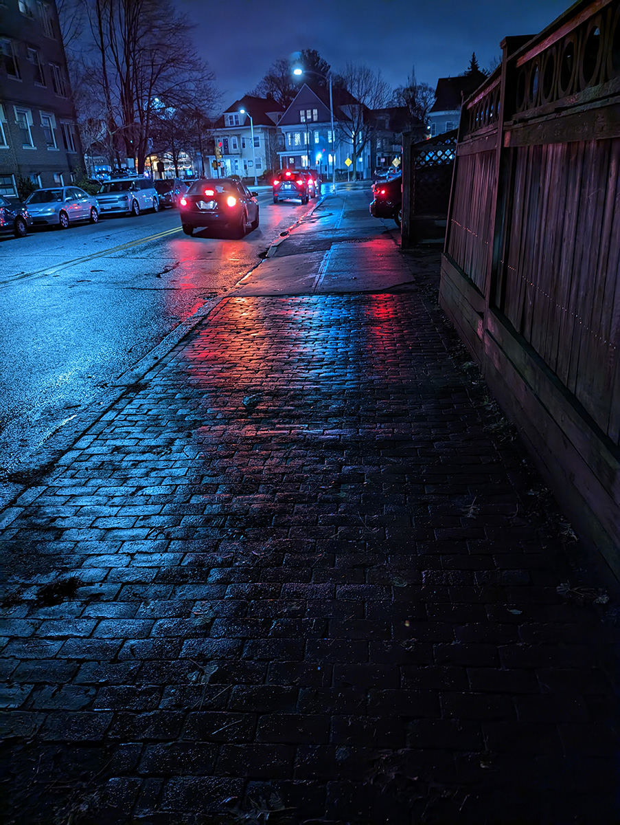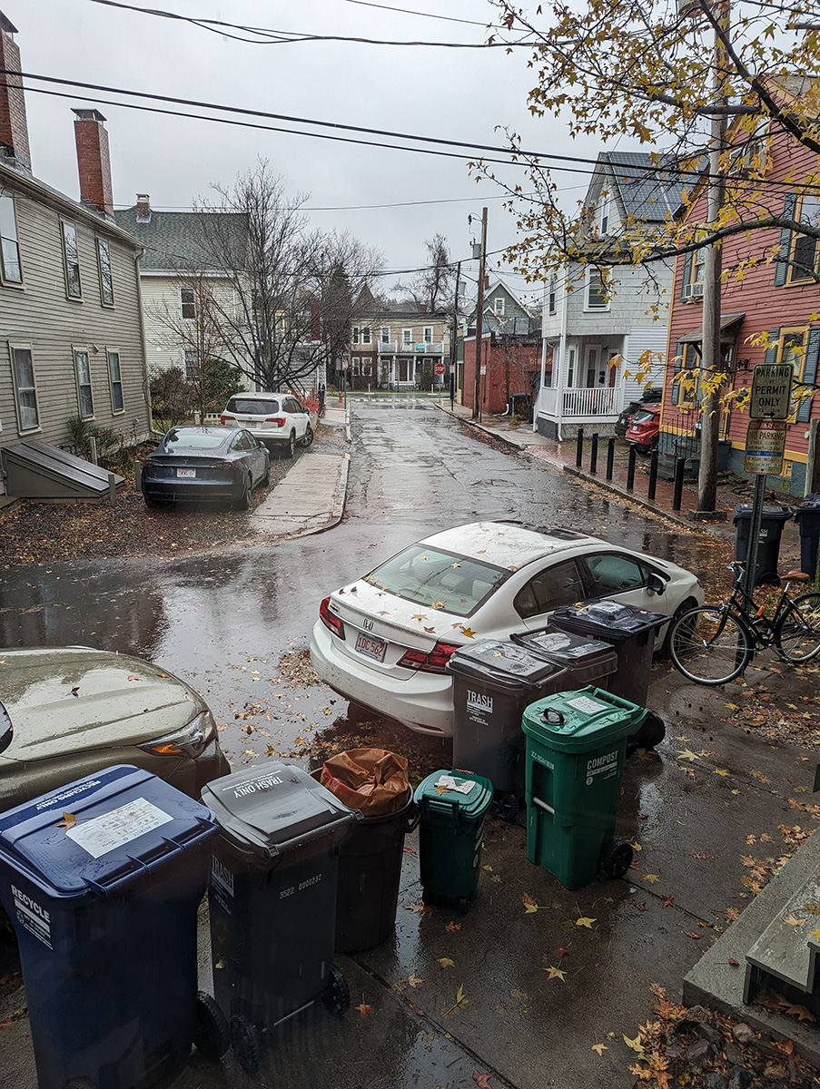 i went down to the cafe in the late morning for my wednesday shift. i decided to walk because it was raining, but it wasn't raining at the time, and i briefly thought about taking the bike, but i checked the forecast and it said there'd be more rain later today, so safer just to walk instead of having to ride in the pouring rain.