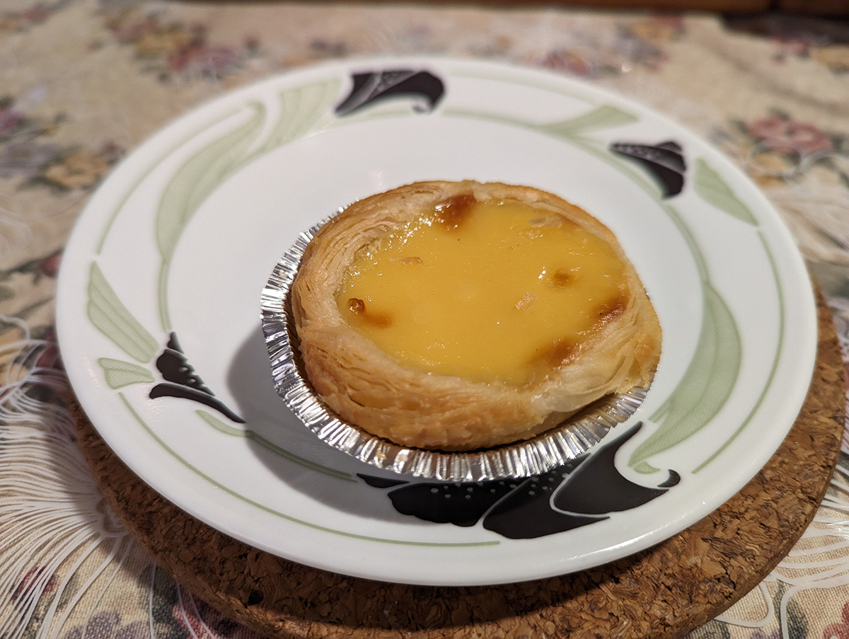 when i finally went inside i had a very late lunch (4:30pm) of leftover pan-fried dumplings. my father also got some frozen portuguese custard tarts which he reheated in the toaster oven. they were okay, the custard part was piping hot, and didn't taste as good as fresh custard tart. i thought i also tasted a bit of artificial sweetener.