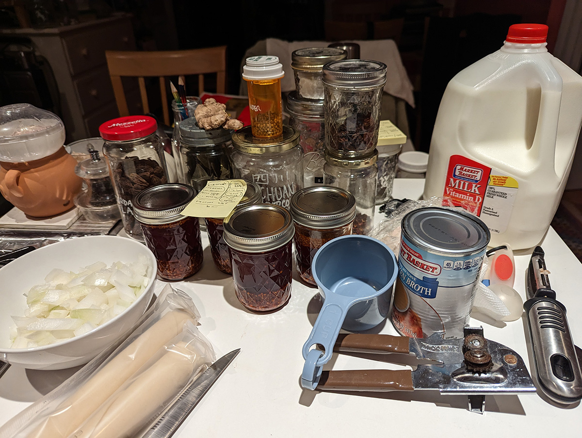 around 3pm i started making my sichuan chili oil, after consulting various online recipes and youtube videos. here's my recipe: