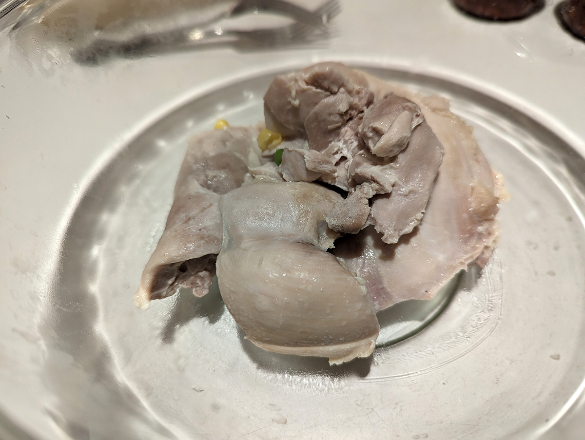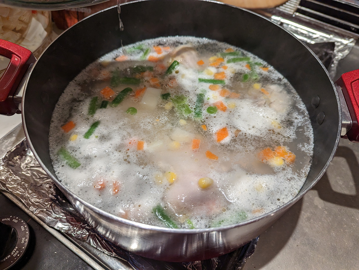 1 lb. chicken breast (approx. 2 breasts), shredded 1 cup frozen vegetables 1 baking potato, peeled, cubed