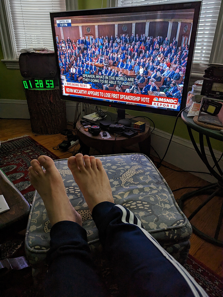 the big event today was the vote in the house chamber for a new speaker of the house. republican kevin mccarthy didn't have the votes he needed to win but let the vote procede anyway. the first vote was just to see where people in his party stood. mccarthy could only afford to lose 4 votes. he ended up losing 19, which was the worst case scenario, as the extreme right-wing members of his party openly rebelled against him.