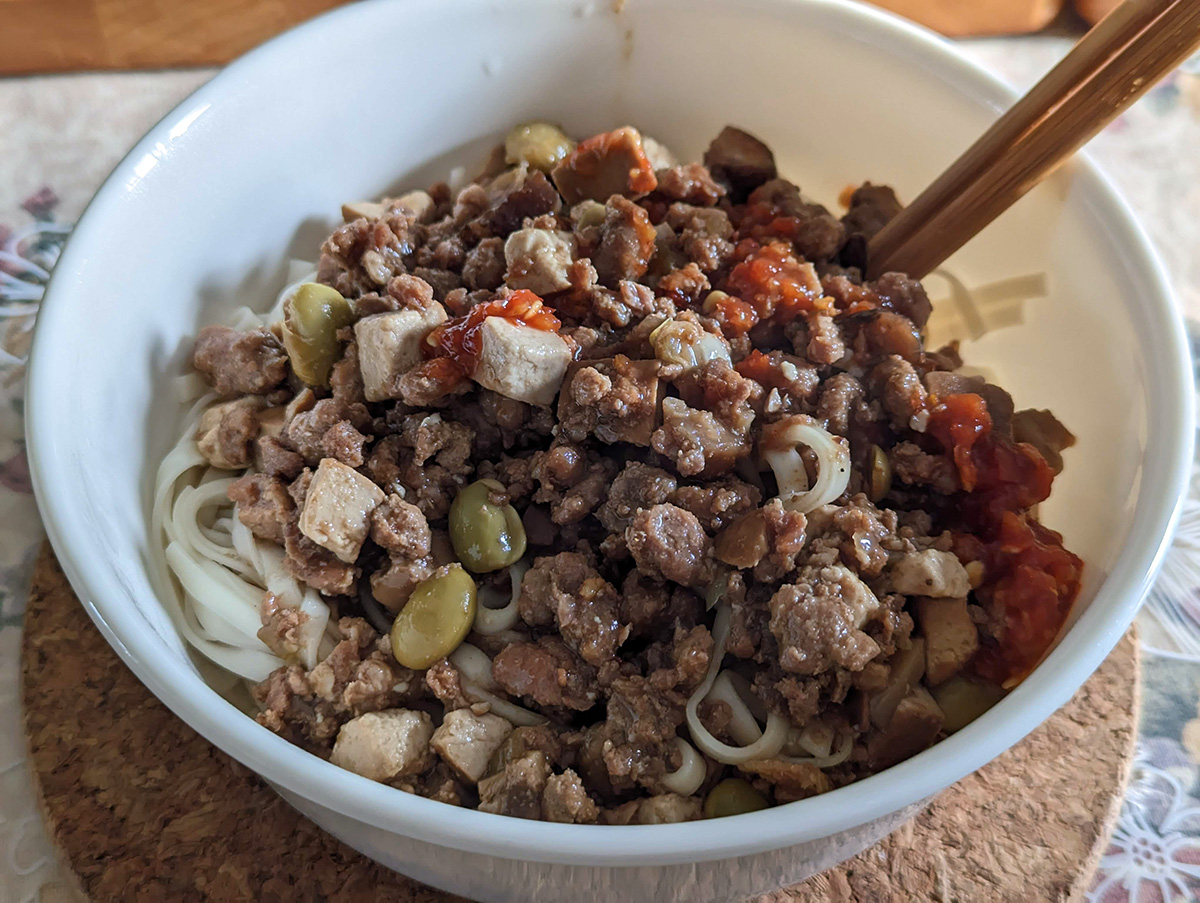 once it got dark, my father was in the kitchen making a prepackaged taiwanese ningxia stinky tofu broth. we had it a while back, but that time we added too much water which diluted the flavor. this time we didn't dilute as much, and also added more salt.