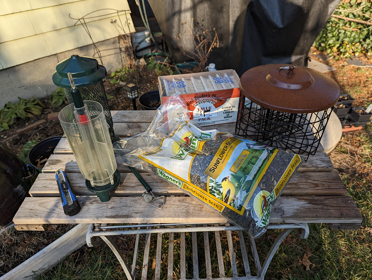 i needed to get bird food at OSJL: a bag of sunflower seeds ($8) and a box of suet cakes ($10). i used a gift card that i got the last time i shopped at OSJL. it was given in error, and i wasn't even sure how much was on the card, which turned out to be $20. we returned home via another google route - this time more direction - from seyon to warren to belmont. the only tricky part was a weird intersection at the junction of seyon and warren.