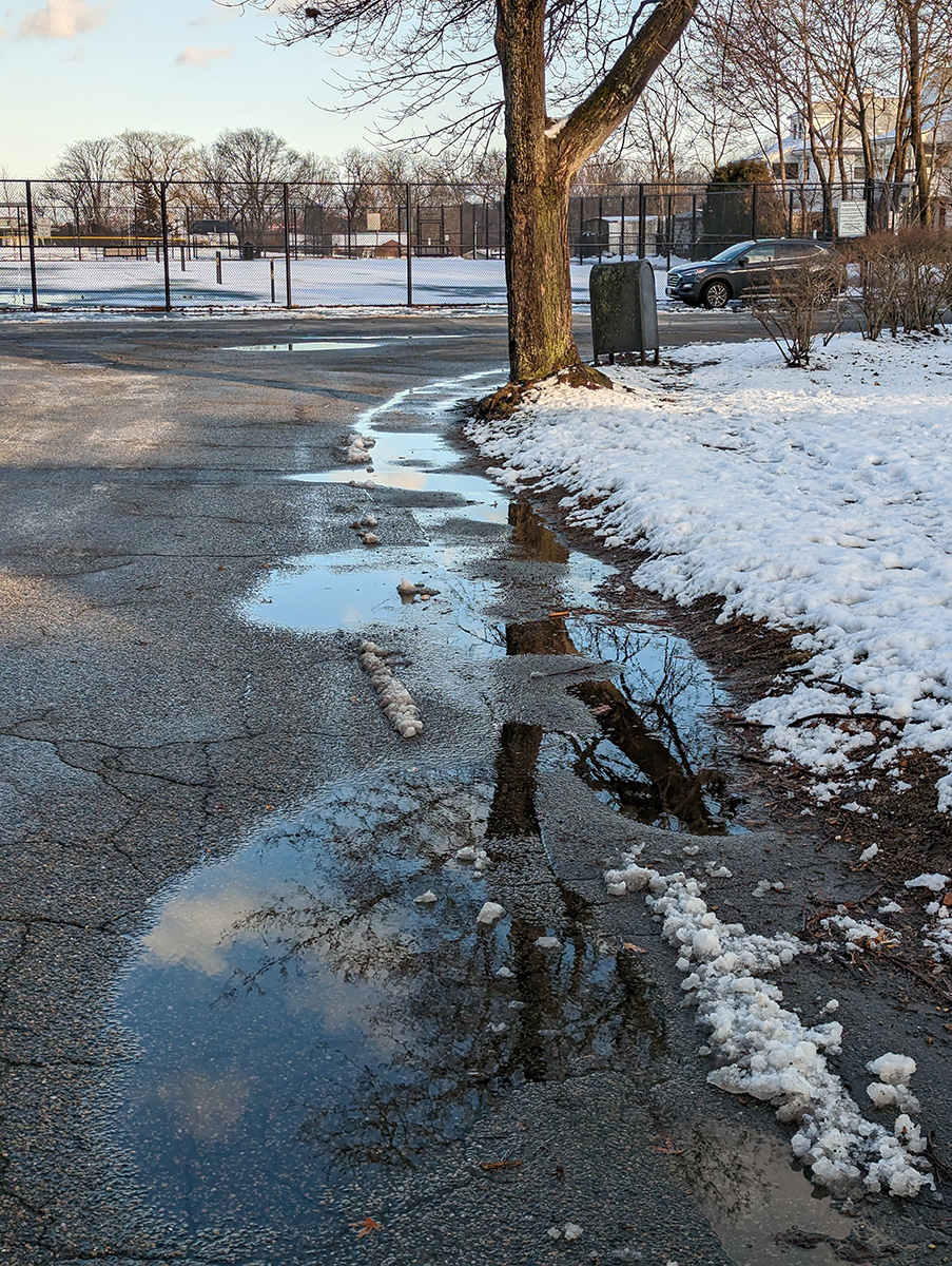 i noticed it was surprisingly warm (if you can call 36° warm) and there was enough snow melting that the roads were mostly safe to ride. so after returning home and dropping off my groceries, i decided to ride to belmont and the clean the solar panels after all. sure, by this time tomorrow they'd be covered in snow again, but clearing the snow today would prevent compaction and the snow that's scheduled to fall tomorrow will most likely all melt since it'll transition to heavy warm rain overnight.