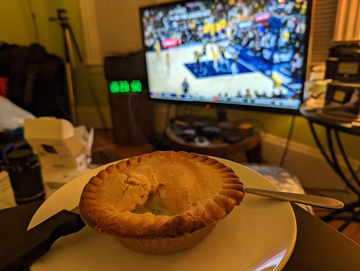 since i ate in the late afternoon, i wasn't very hungry. later in the evening, i threw a small chicken pot pie in the oven and didn't eat it until after 10pm.