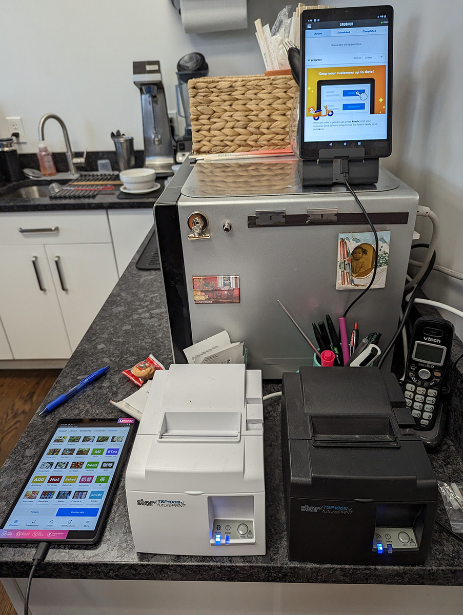 i left my parents' place and headed to the cafe to drop off the temu items. there was a tablet stand i wanted to try out. unfortunately it's small and seemed like it was designed for a phone rather than a tablet. it's also non-adjustable. i ended up giving it to my mother to use for her phone. i adjusted the router so the 2.4GHz wifi would use channel 1, after reading last night that channels 5 and above share similar frequencies with the microwave oven. i hoped this would fix the interference issue, but while i was there, the tablet went offline again when somebody used the microwave.
